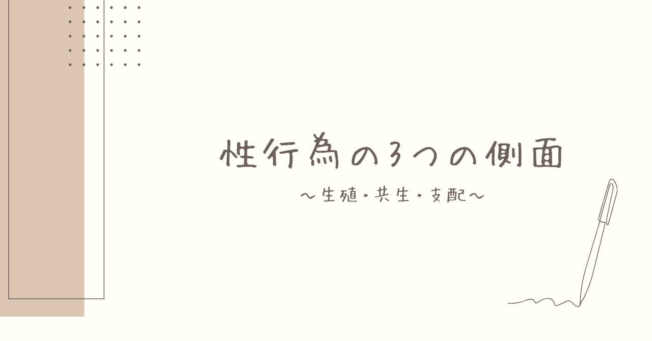 村瀬幸浩先生によると、”性行為には大きく3つの側面がある”というのです。皆さん、ご存じですか?私が包括的性教育を学びはじめて、特に印象に残っていることでもあるので、紹介したいと思います。