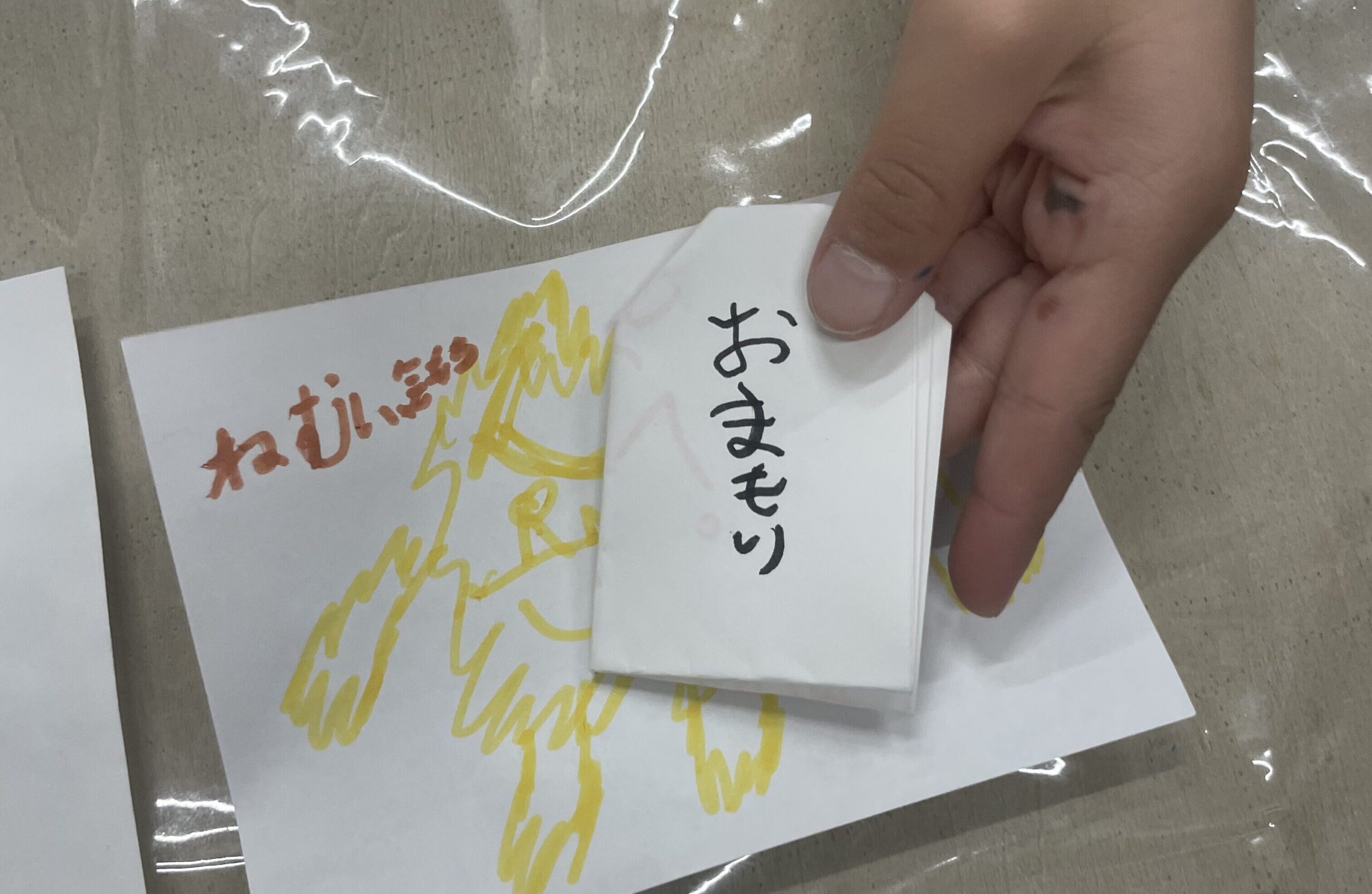 お家に持って帰ってお守りにしてねと声をかけると、お守りの形に折って持って帰ってくれました♪